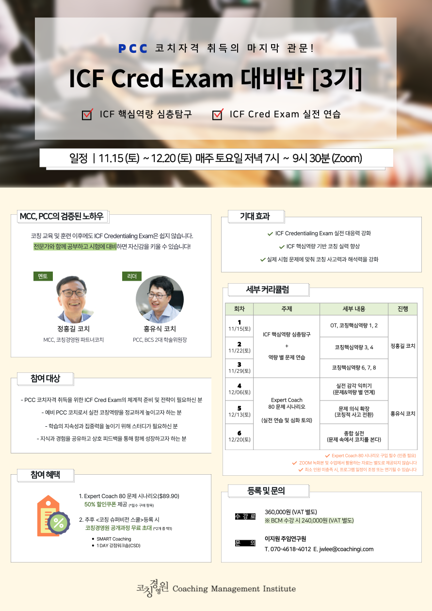 '(주)코칭경영원' 은 (이하 '회사'는) 고객님의 개인정보를 중요시하며, "정보통신망 이용촉진 및 정보보호"에 관한 법률을 준수하고 있습니다.
