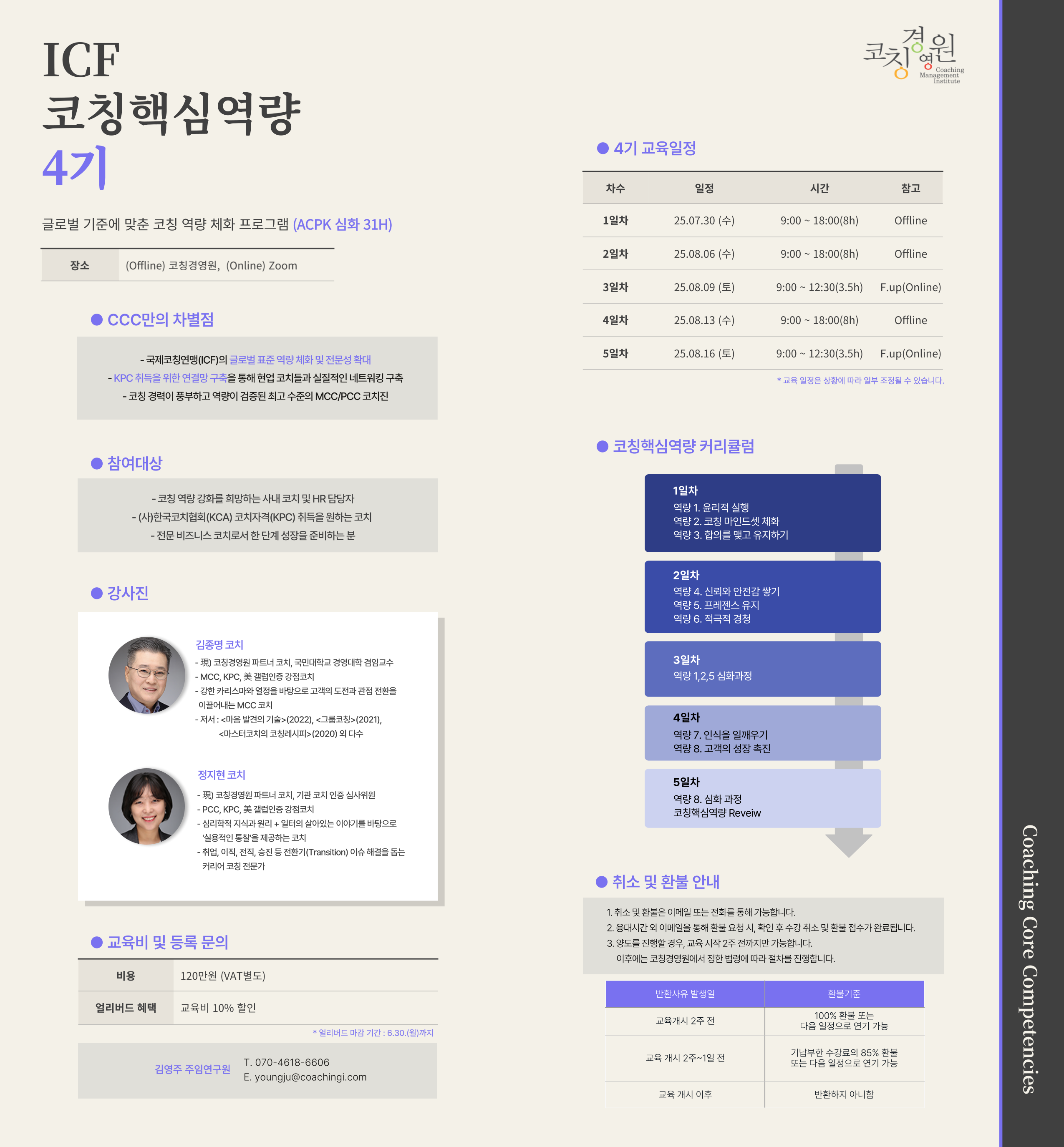 · (사)한국코치협회(KCA) 심화 프로그램 인증 과정으로 31시간 교육 시간 제공
