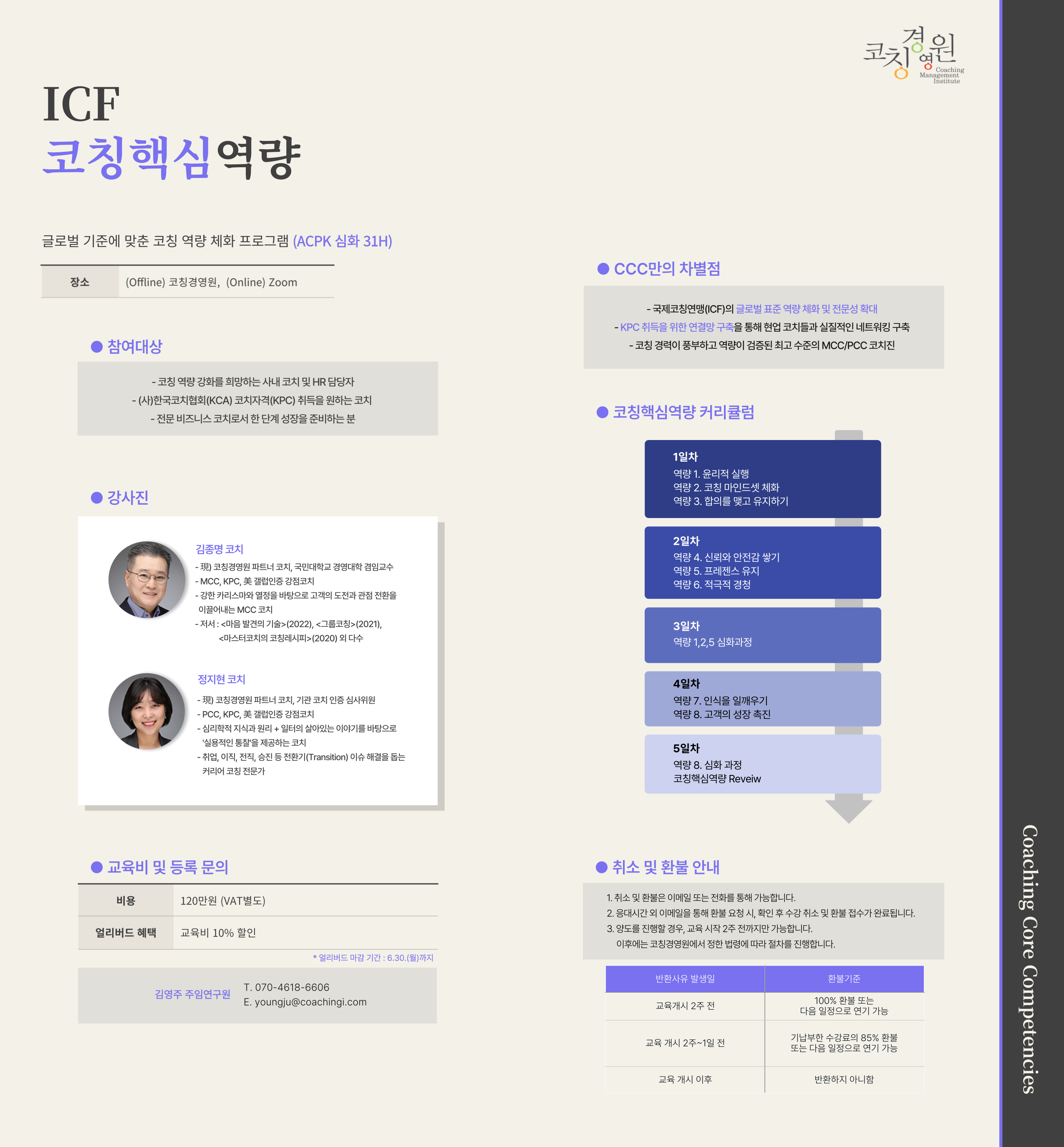 ※과정 문의, 신청 등은 코칭경영원 홈페이지 문의하기 게시판 또는 02-540-1655로 연락주시기 바랍니다.