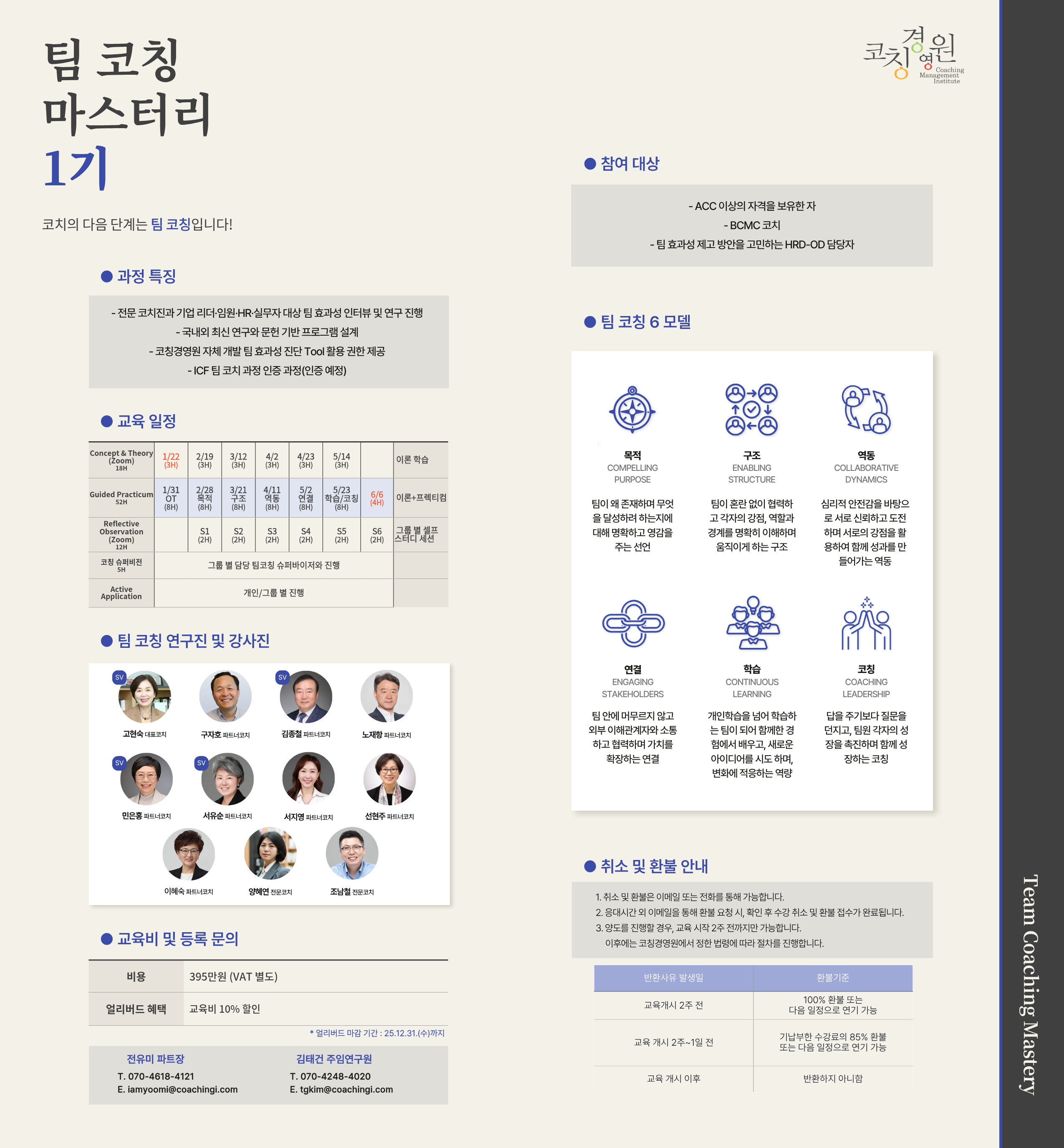 '(주)코칭경영원' 은 (이하 '회사'는) 고객님의 개인정보를 중요시하며, "정보통신망 이용촉진 및 정보보호"에 관한 법률을 준수하고 있습니다.