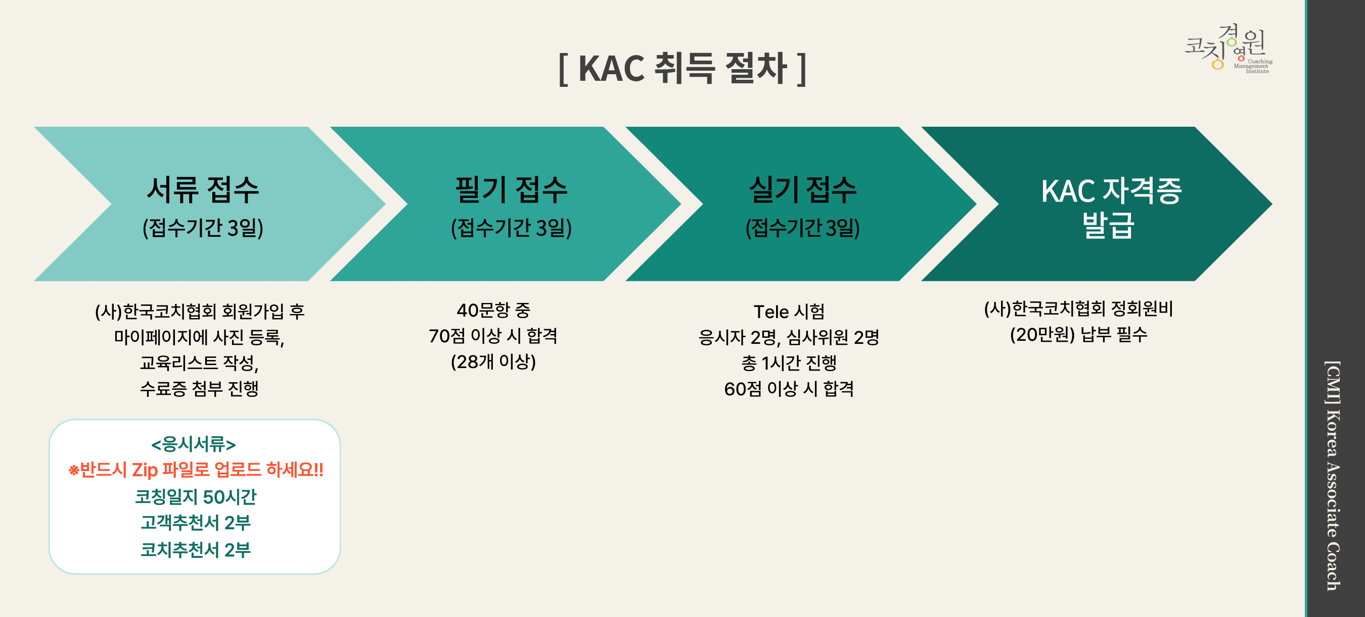 ▶각 시험 일정에 따라 (사)한국코치협회에 온라인으로 접수 한국코치협회 홈페이지(클릭)